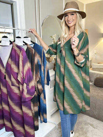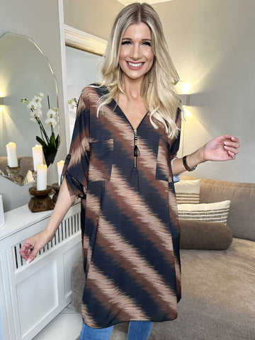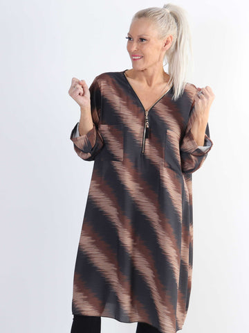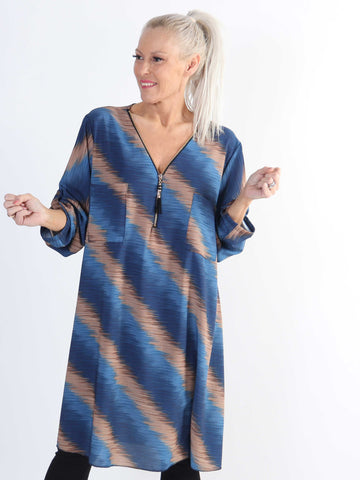 Claudia Stripe Dress - Plus size tunikakjole med print og lynlås