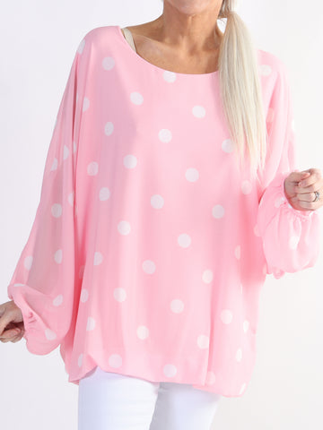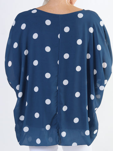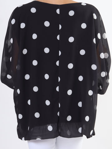 Destiny Dot - Plus size bluse i chiffon med prikker