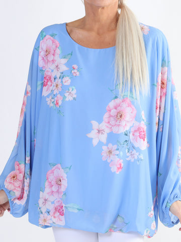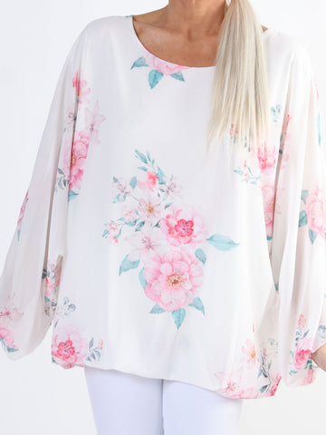 Destiny Rose - Plus size bluse i chiffon med bonderoser