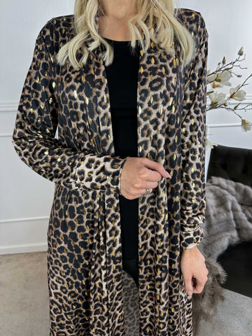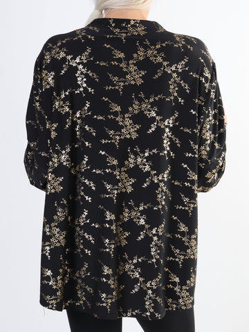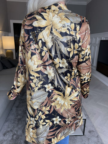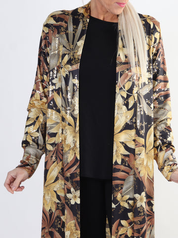 Mikkala Gold Flower - Elastisk plus size cardigan med print