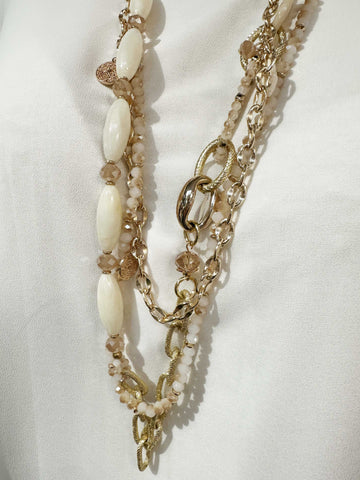 Gaia - Guldfarvet perlehalskæde med tre kæder