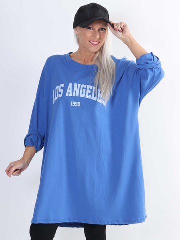 Haniya - Plus size joggingkjole i viskose med Los Angeles stående