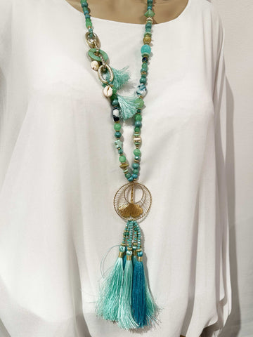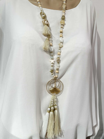 Kyra - Perlehalskæde med guldvedhæng og kvaster