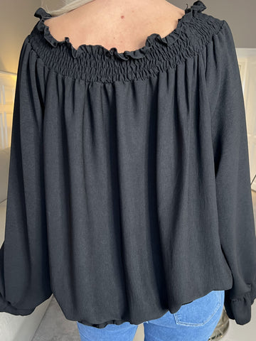 Ebba Gold - Sød bluse i elastisk stof med gulddetaljer