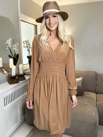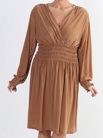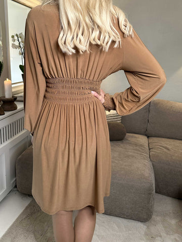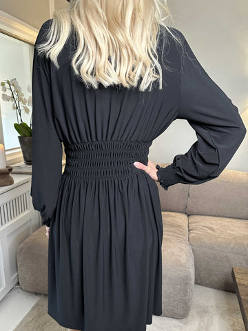 Pams Plain Short L/S - Elastisk kort kjole med smock og lange ærmer