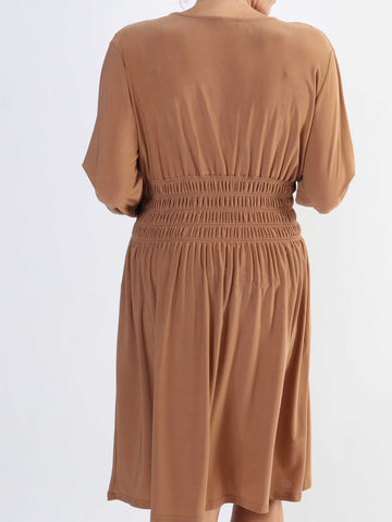 Pams Plain Short L/S - Elastisk plus size kjole med smock og lange ærmer