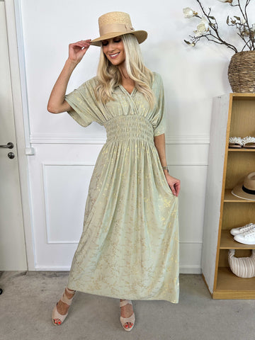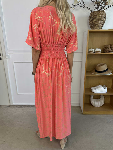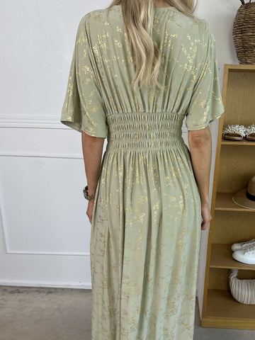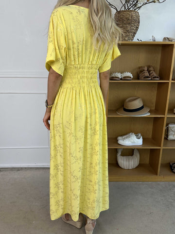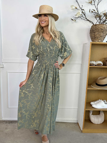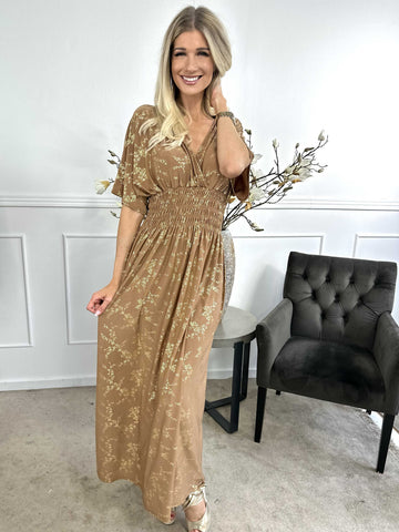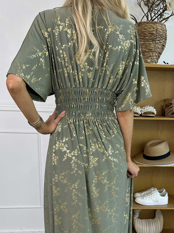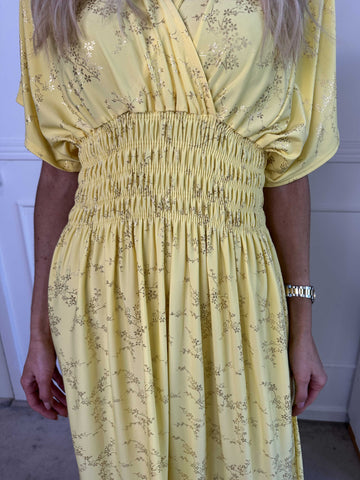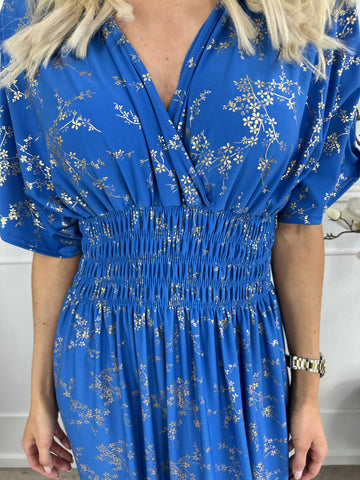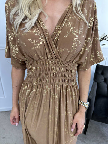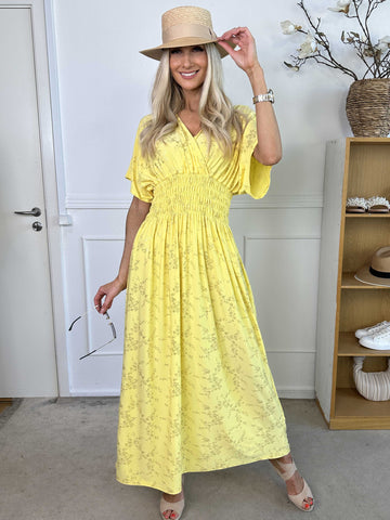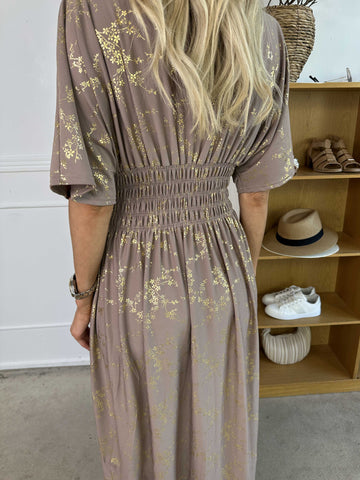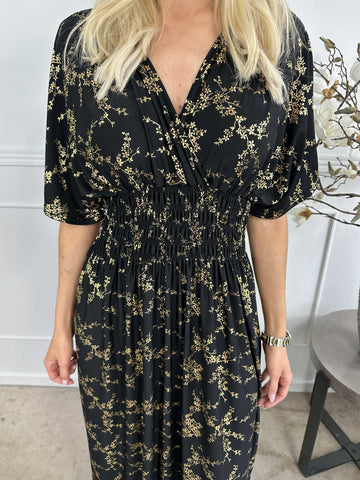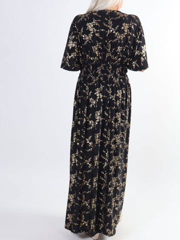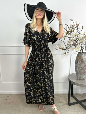 Milano Gold Flower - Lang blomstret kjole med lag på lag look