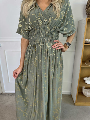 Pams Leafy - Lang elastisk kjole i krølfrit stof