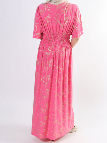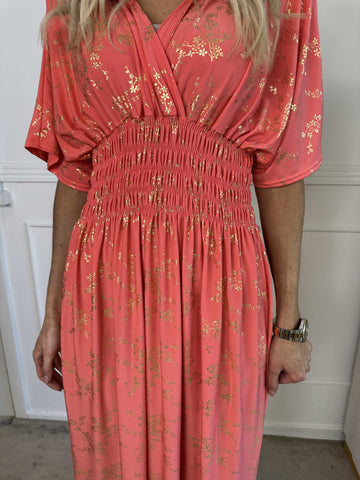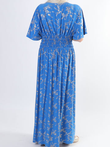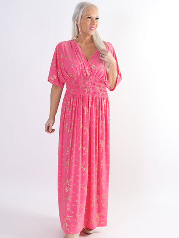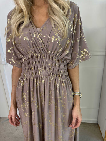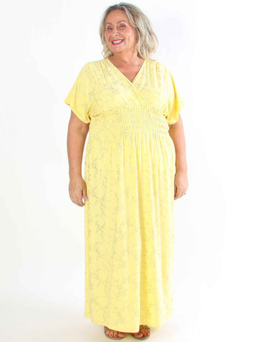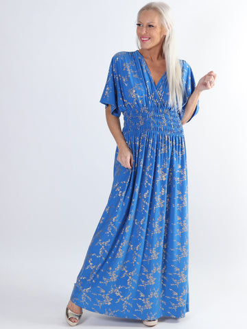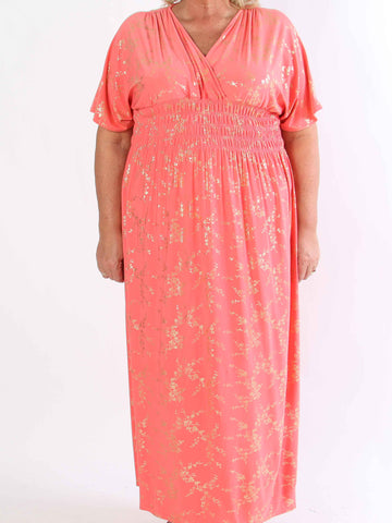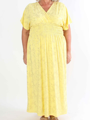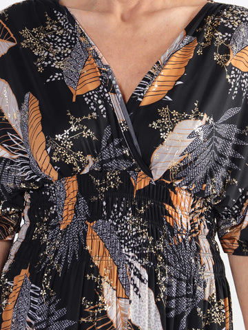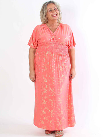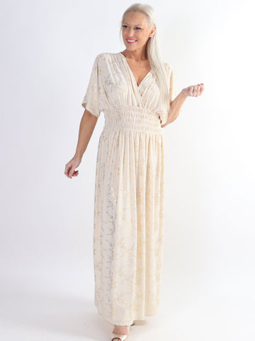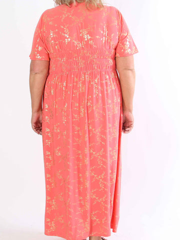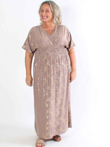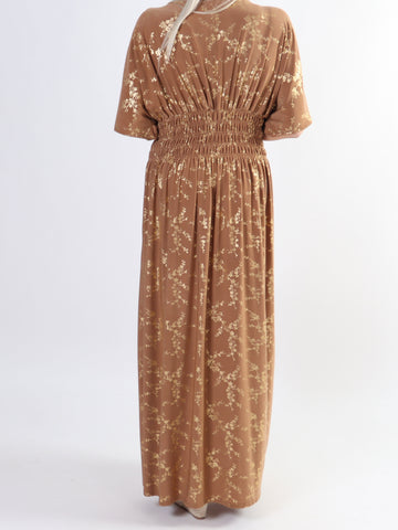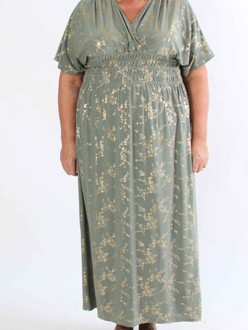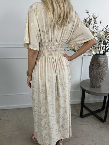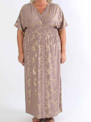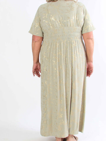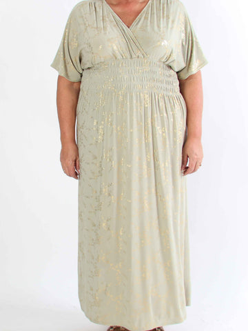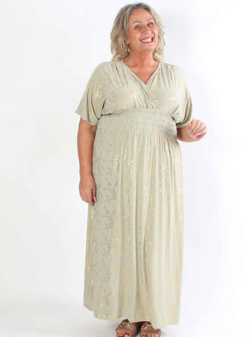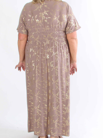 Milano Gold Flower - Lang plus size kjole med lag på lag look