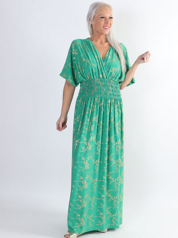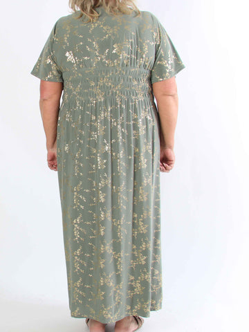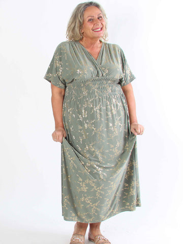 Pams Leafy - Lang elastisk plus size kjole i krølfrit stof
