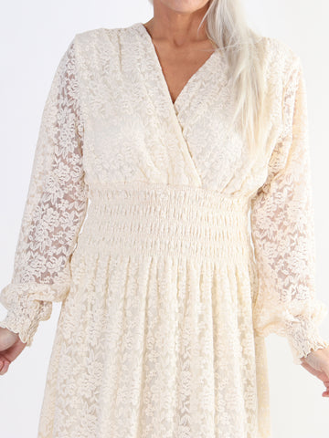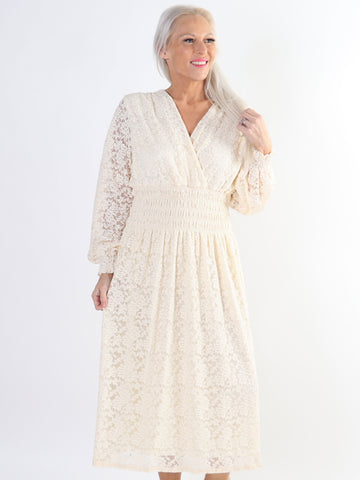 Pams Lace Midi L/S - Elastisk plus size blondekjole med lange ærmer