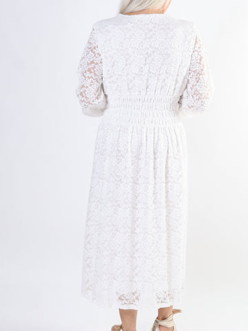 Pams Lace Midi L/S - Elastisk blondekjole med lange ærmer