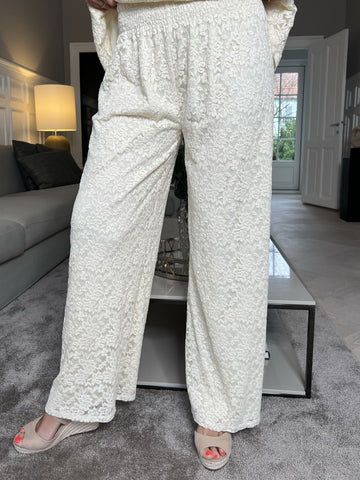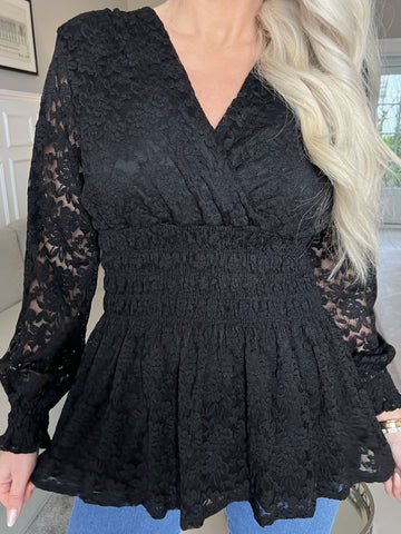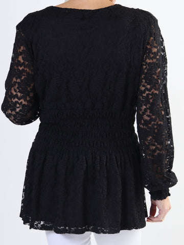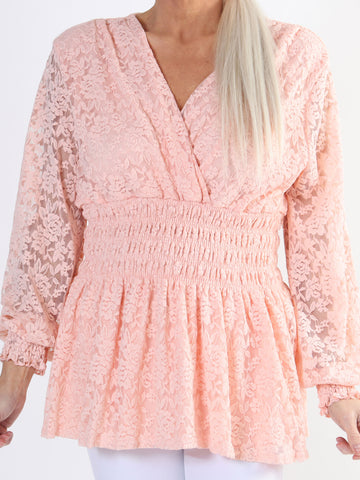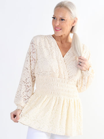 Pams Lace Shirt L/S - Elastisk plus size blonde bluse med lange ærmer