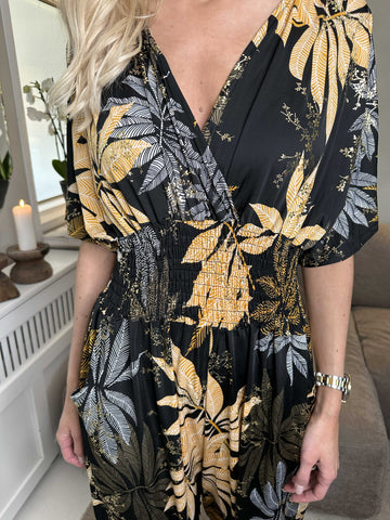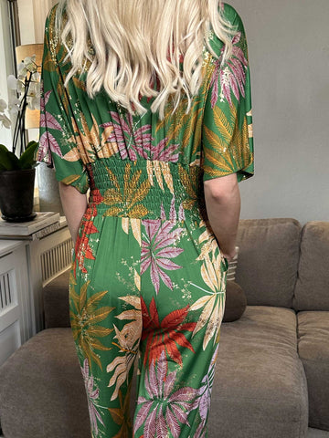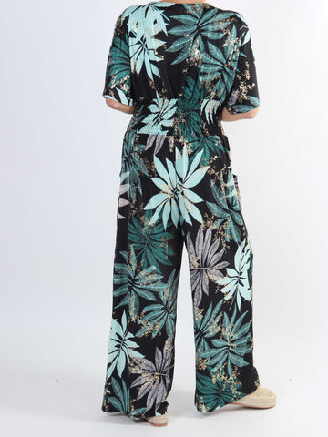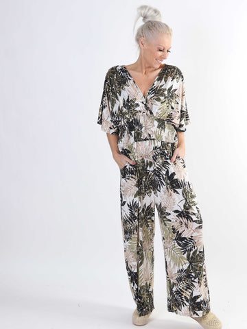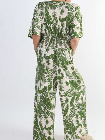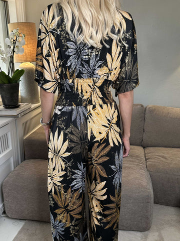 Pams Leaf Jumpsuit - Elastisk buksedragt med bladmønster