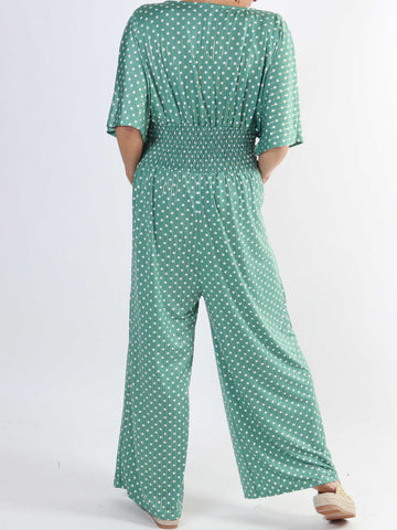 Pams Dot Jumpsuit - Elastisk plus size buksedragt med prikker