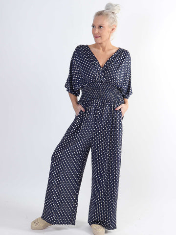 Pams Dot Jumpsuit - Elastisk buksedragt med prikker