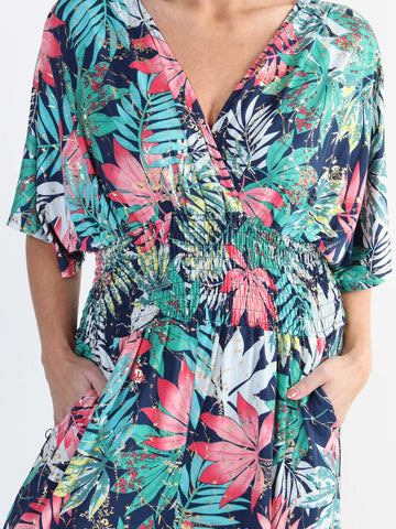 Pams Multi Leaf Jumpsuit - Elastisk buksedragt med bladmønster