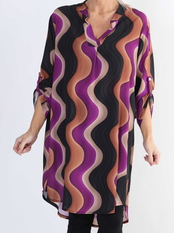Vanesa Dress Wave - Let og luftig mønstret plus size kjole