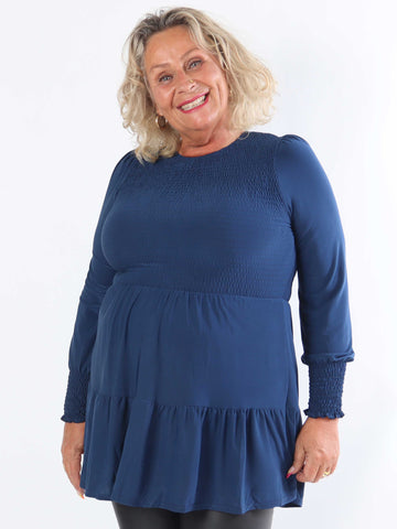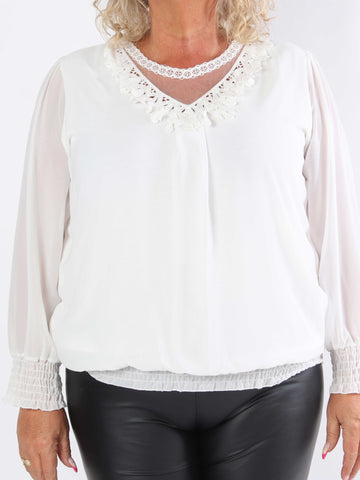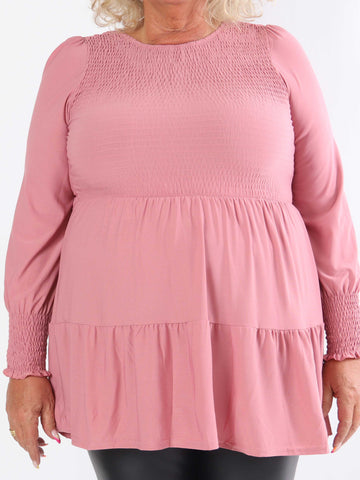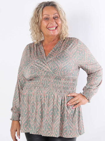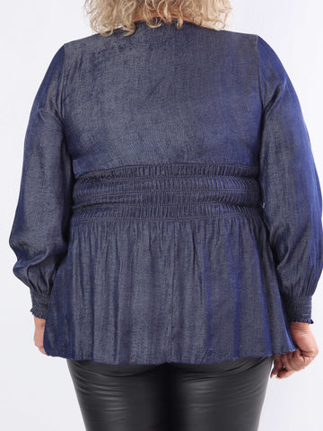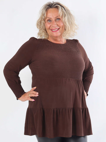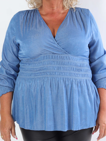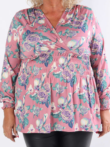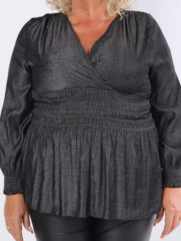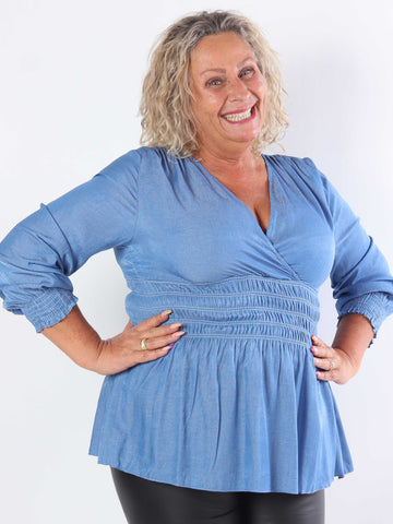 Kelly Shirt - Elastisk plus size bluse med smock henover brystet