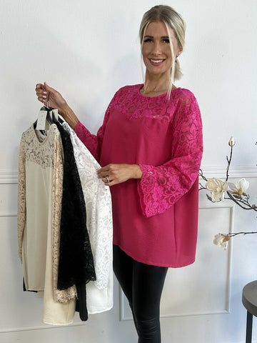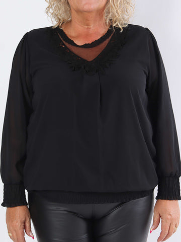 Addison - Plus size tunika i chiffon med detaljer i udskæringen
