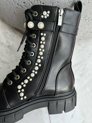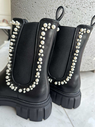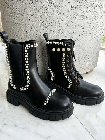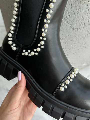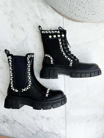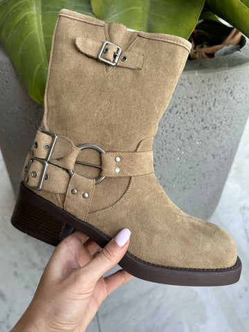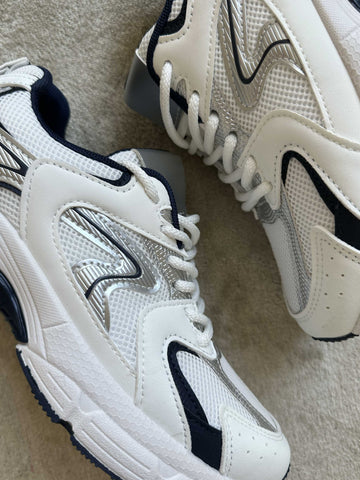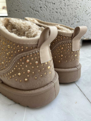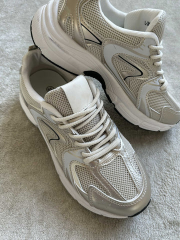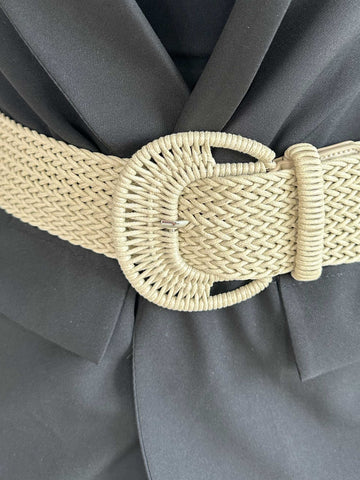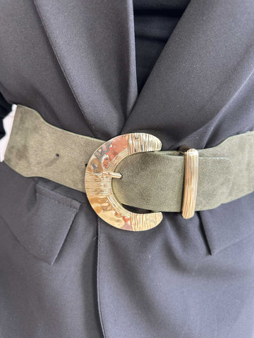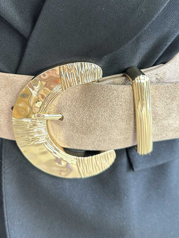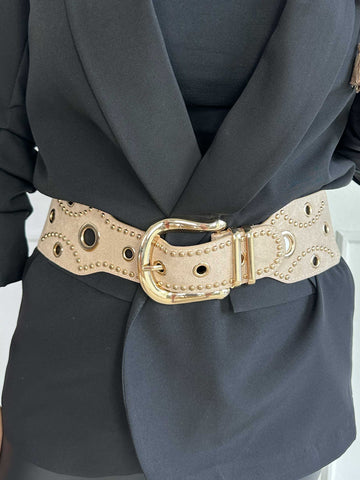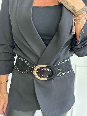 Amara Short - Tofarvet plus size strikbluse med gulddetaljer