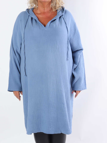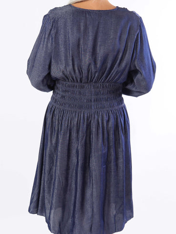 Pams Denim Short L/S - Plus size kjole med smock i livet