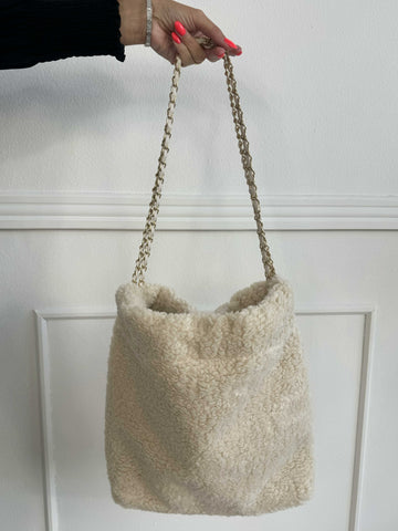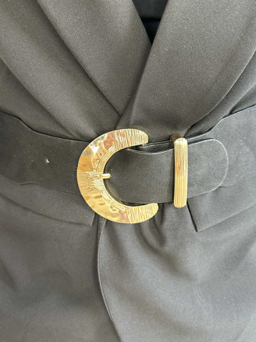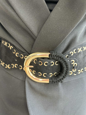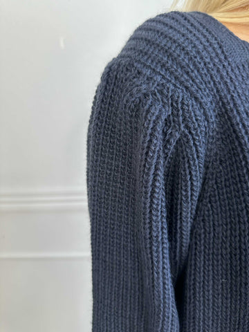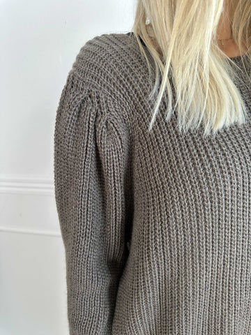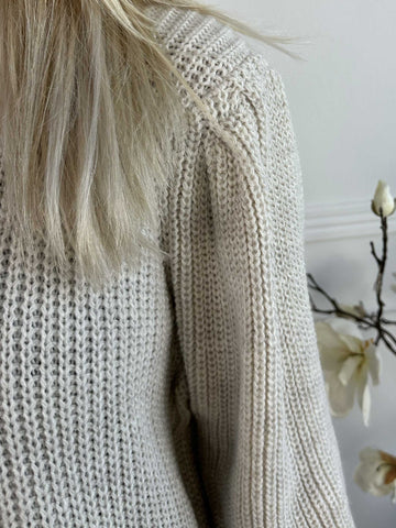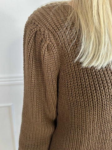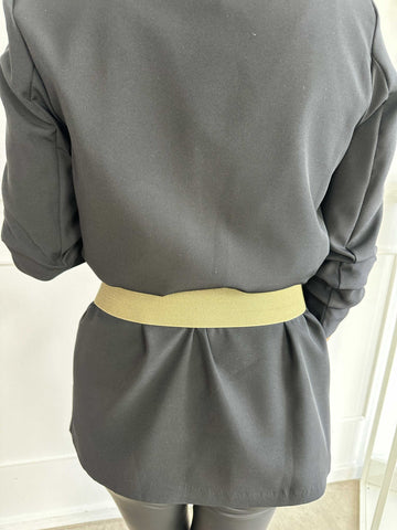 Amara Short - Tofarvet strikbluse med gulddetaljer