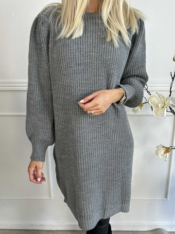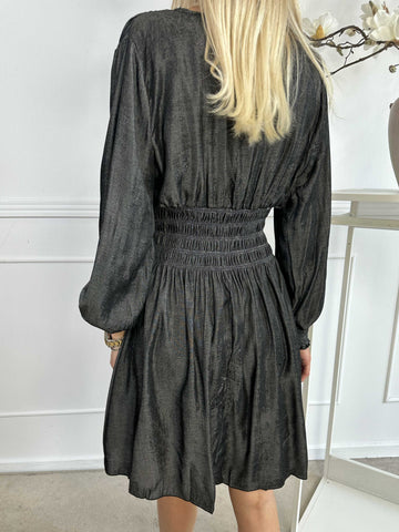 Pams Blossom Short L/S - Elastisk kjole i krølfrit stof med sølv detaljer