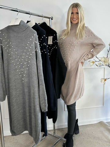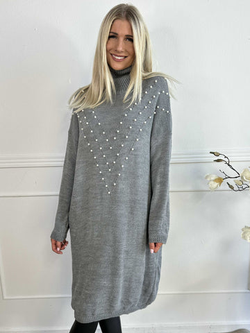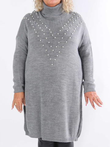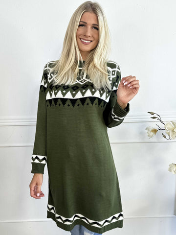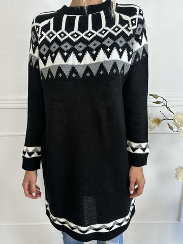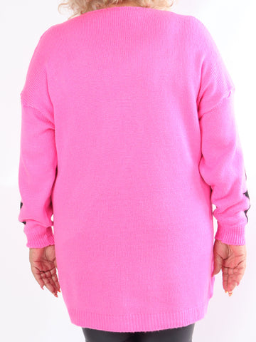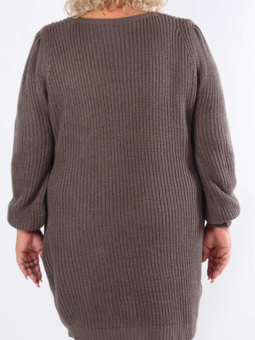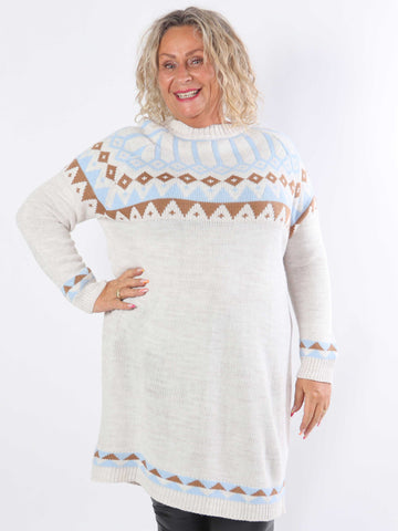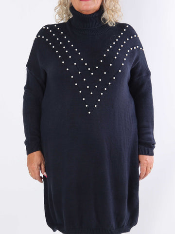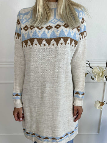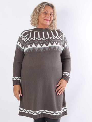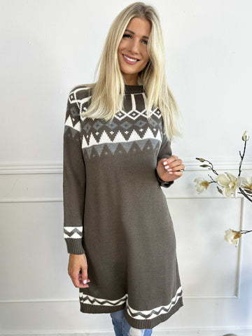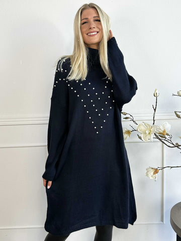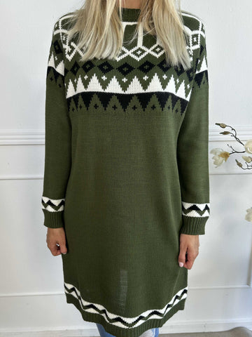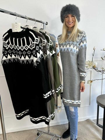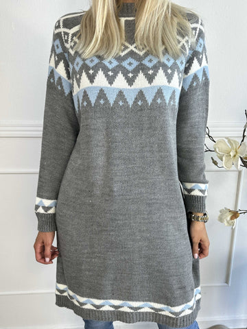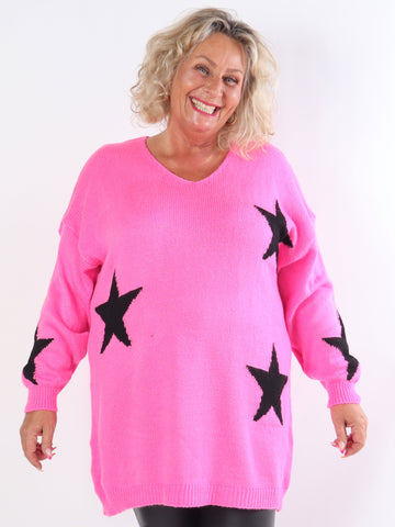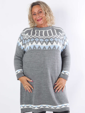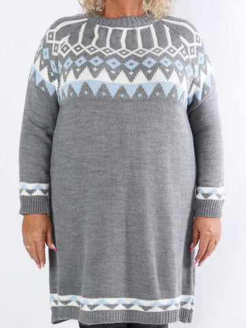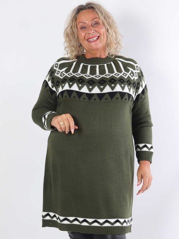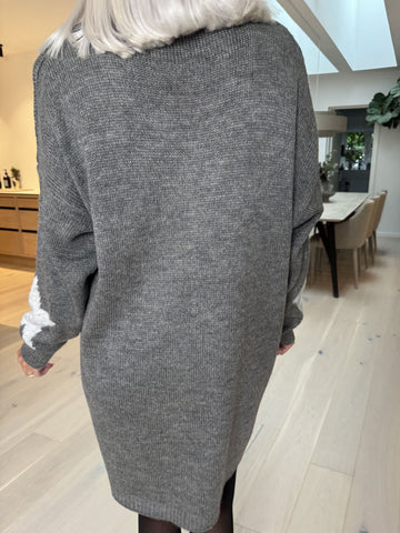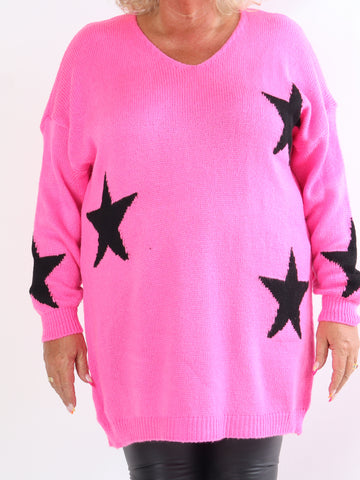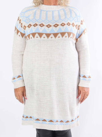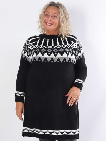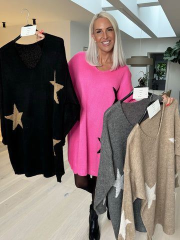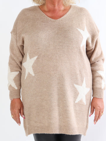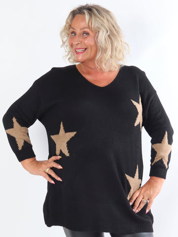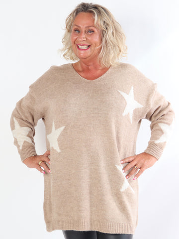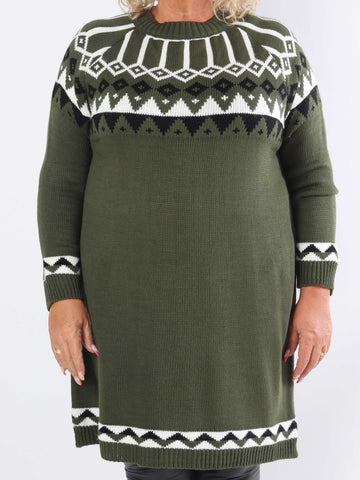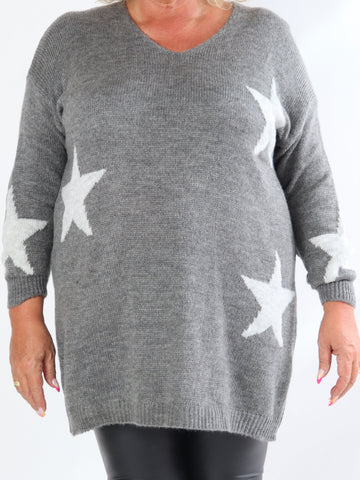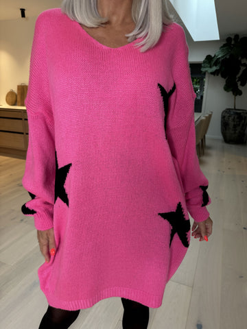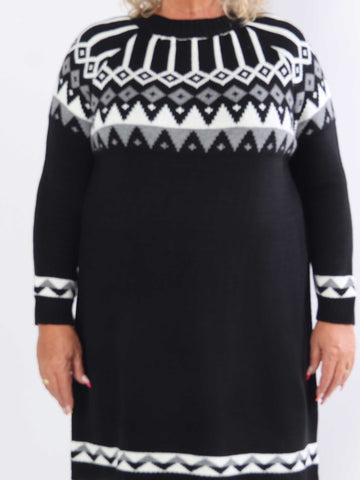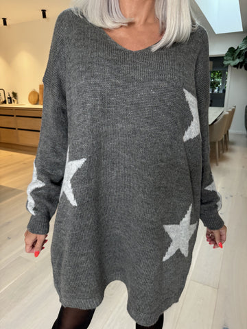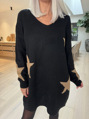 Zaria - Plus size strikkjole med stjerner og v-udskæring