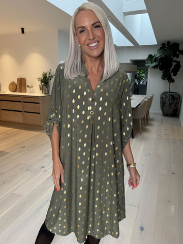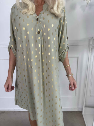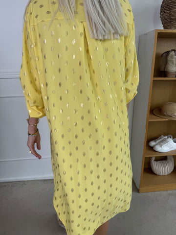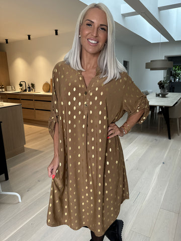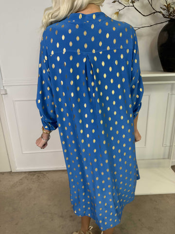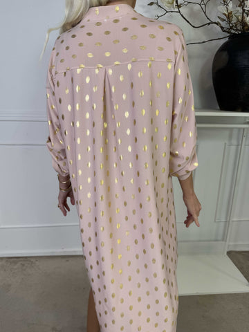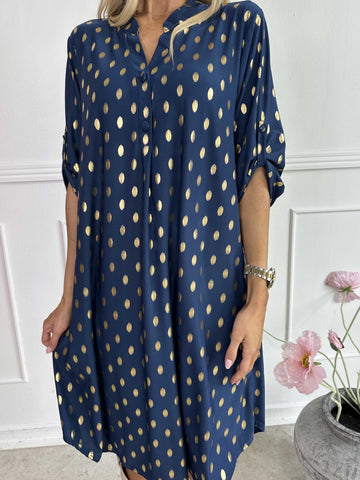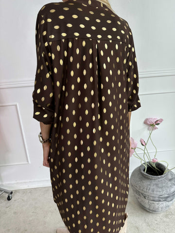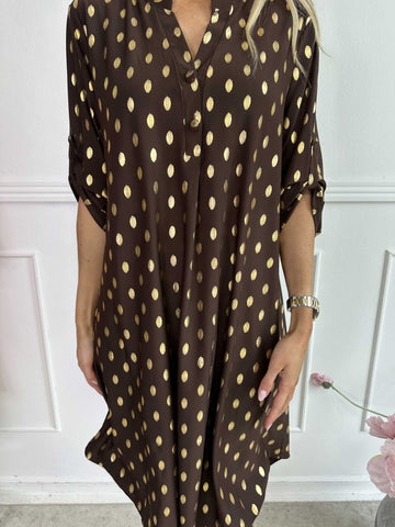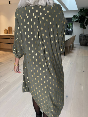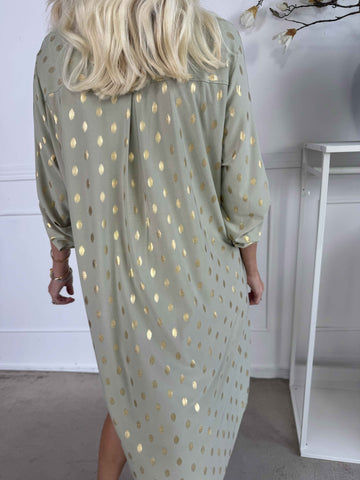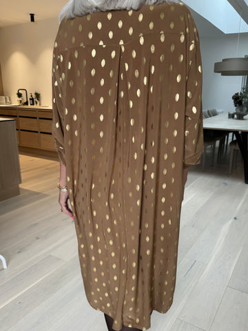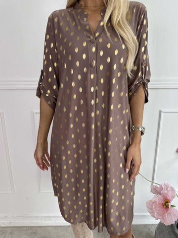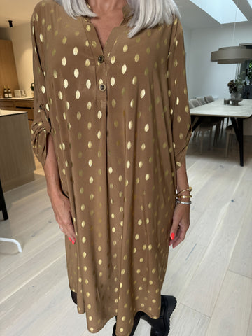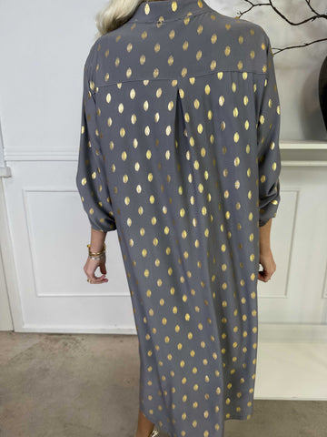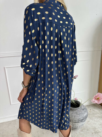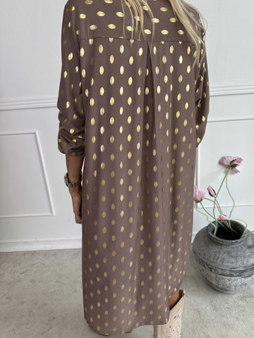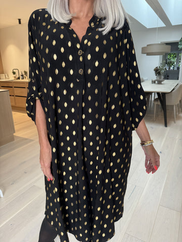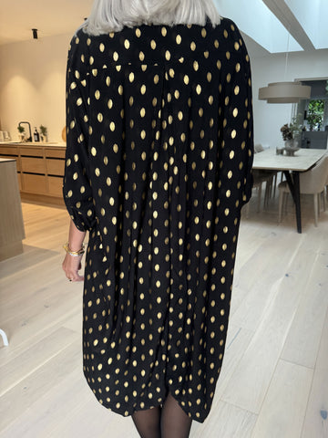 Ebba Gold Long - Elastisk kjole med guld prikker