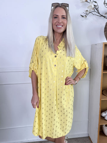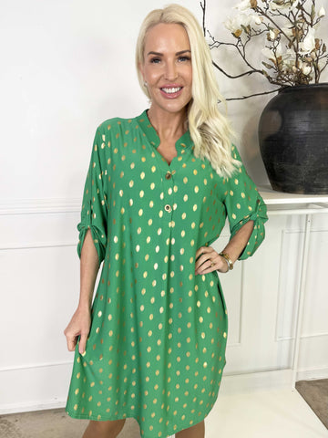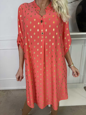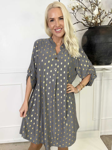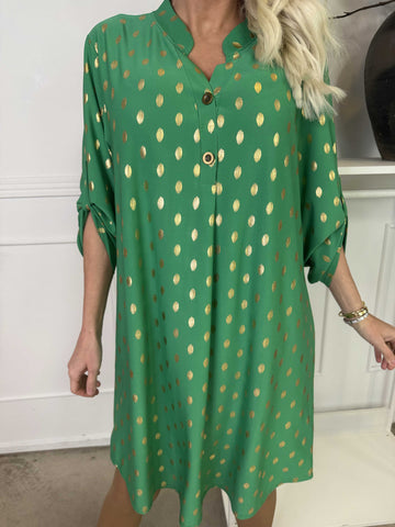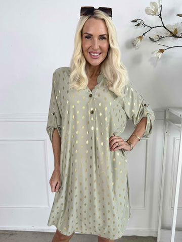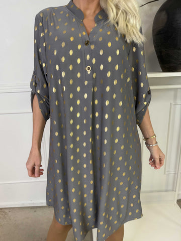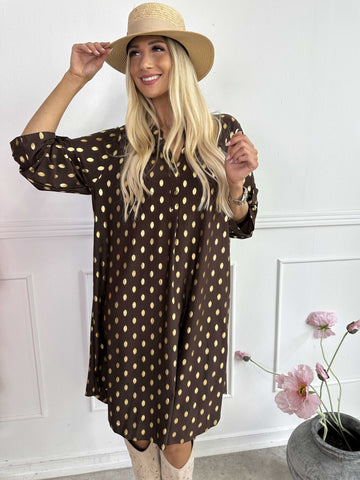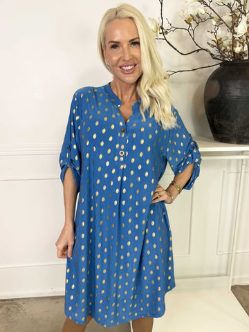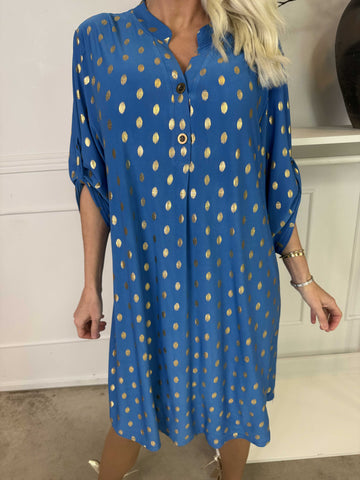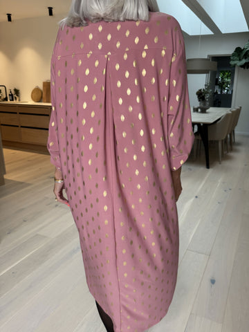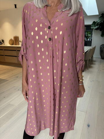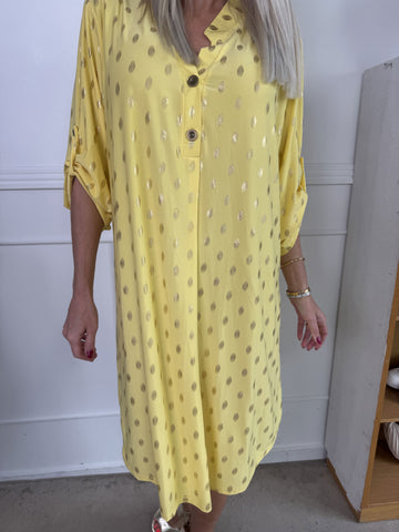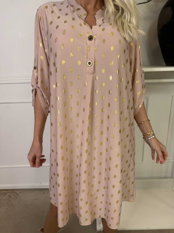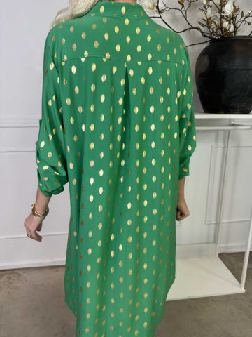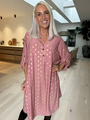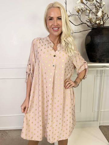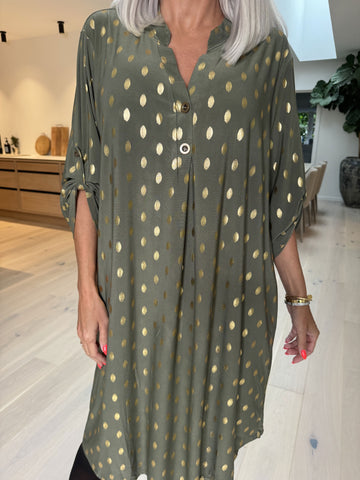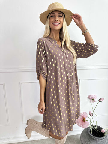 Ebba Gold Long - Elastisk kjole med guld prikker