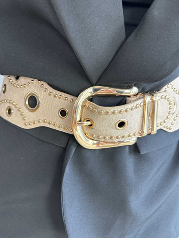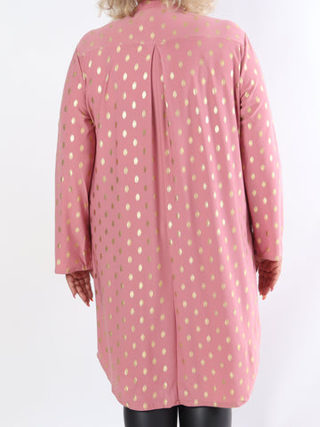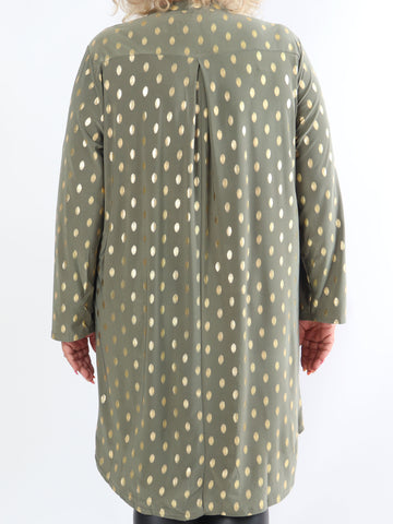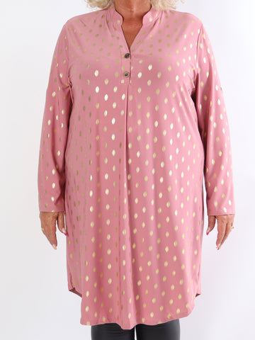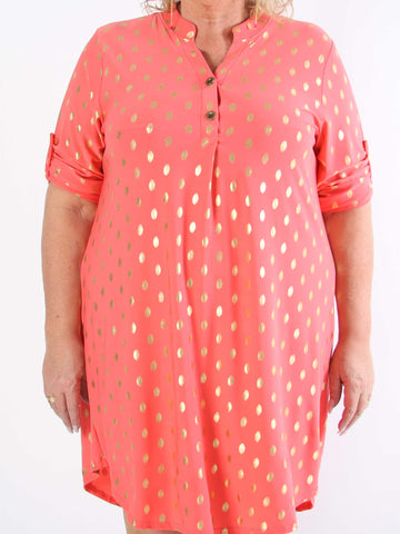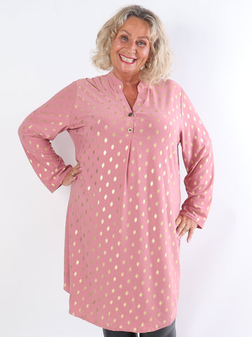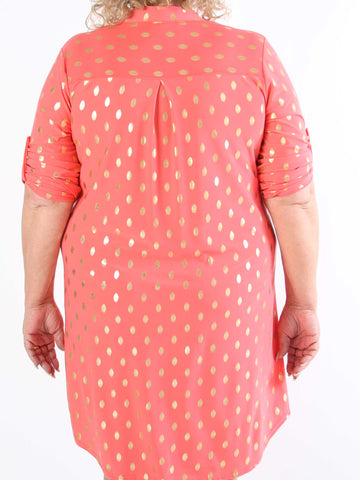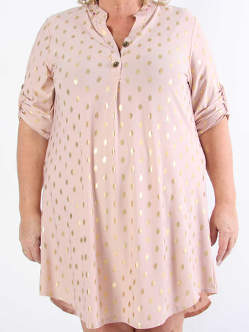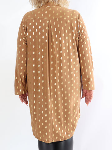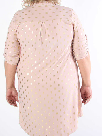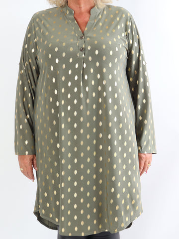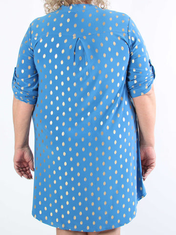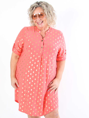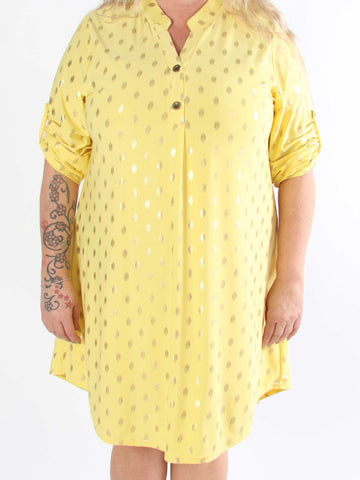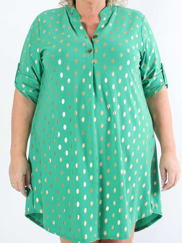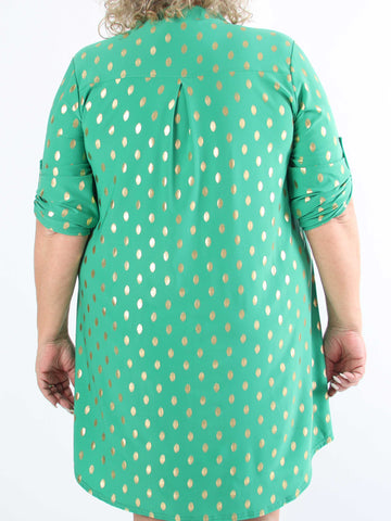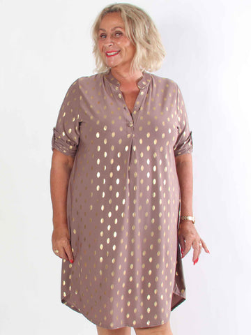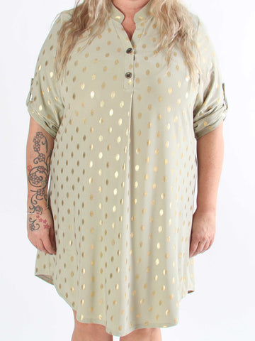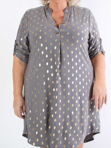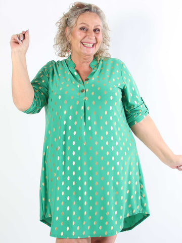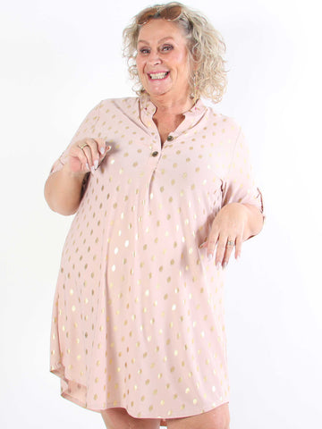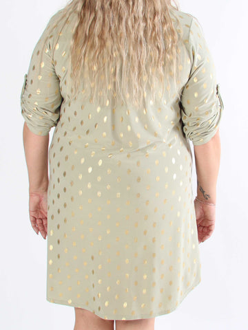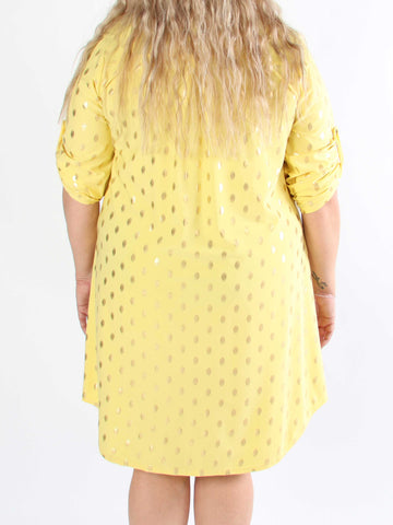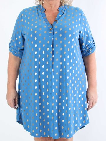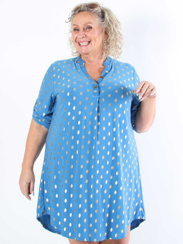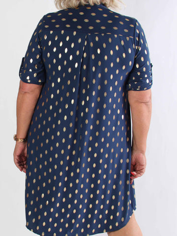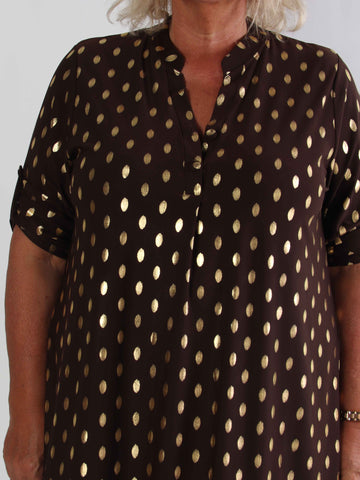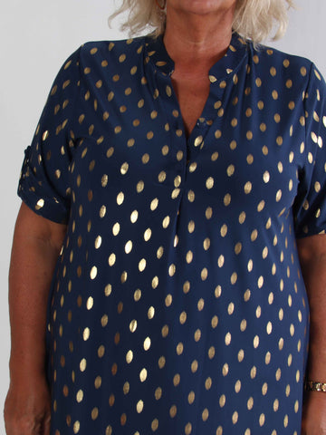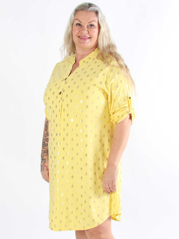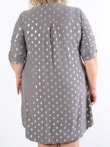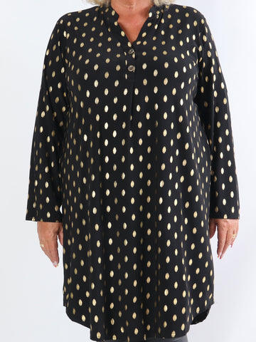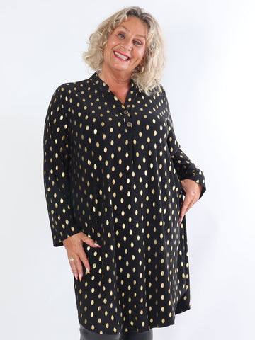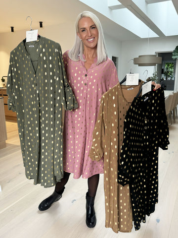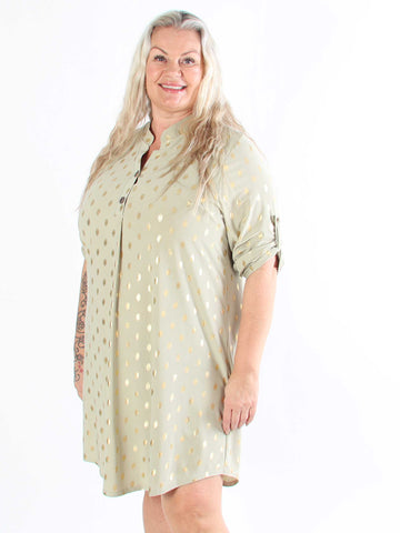 Ebba Gold Long - Elastisk plus size kjole med guld prikker