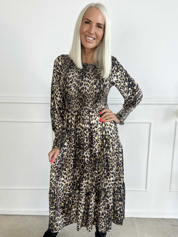 Kelly Animal Long - Elastisk kjole med smock henover brystet