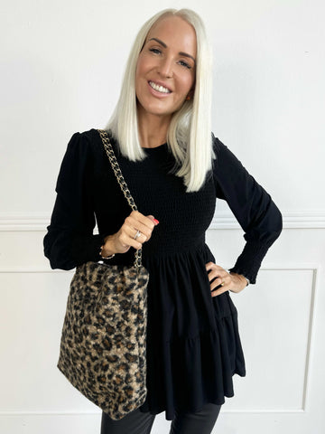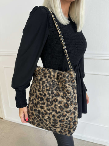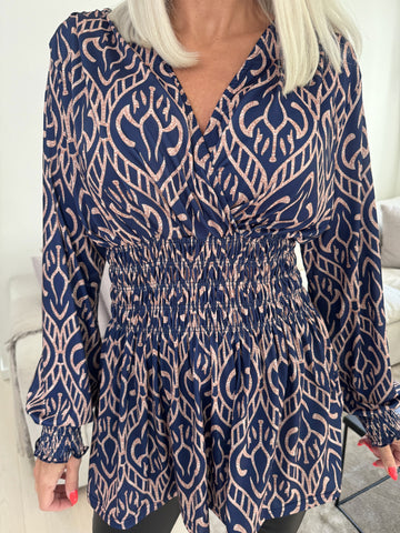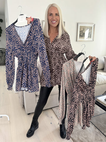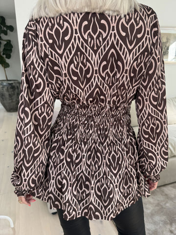 Kelly Animal Shirt - Elastisk bluse med smock henover brystet