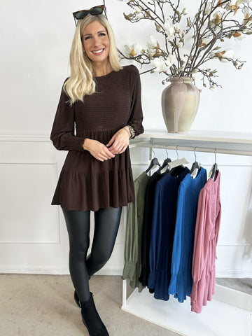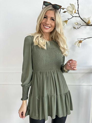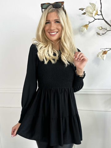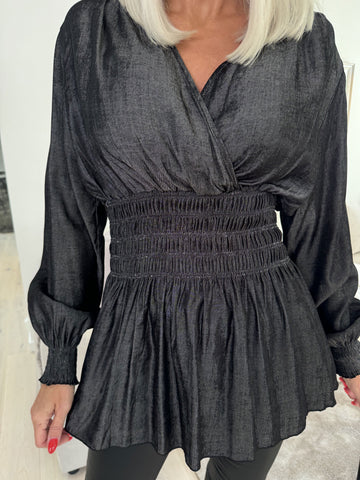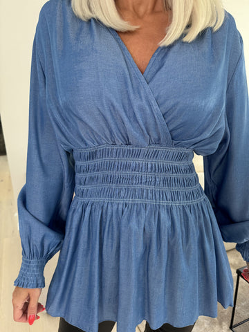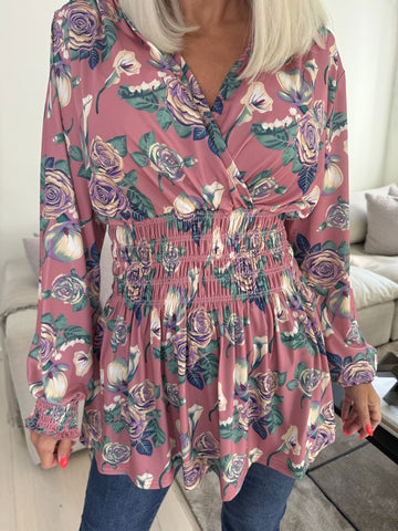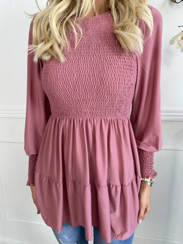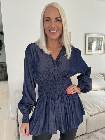 Kelly Shirt - Elastisk bluse med smock henover brystet