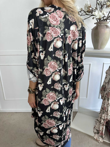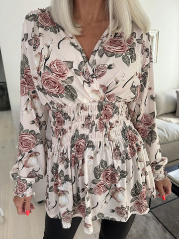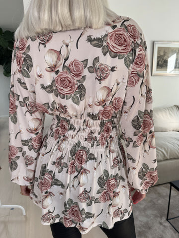 Pams Rose Shirt L/S - Elastisk bluse i krølfrit stof med roser