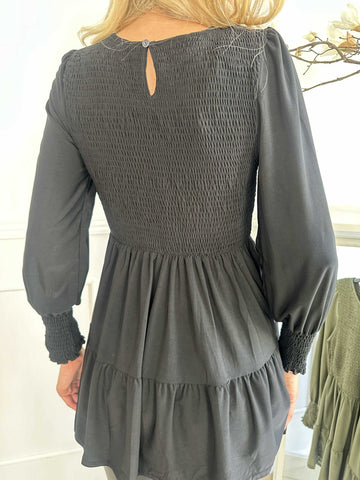Kelly Elements Shirt - Elastisk bluse med smock henover brystet