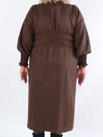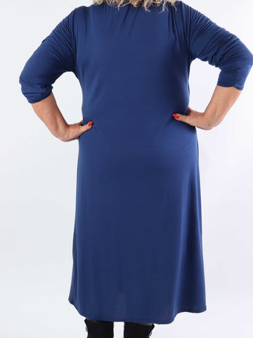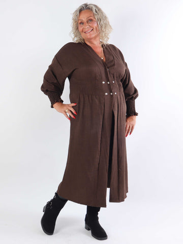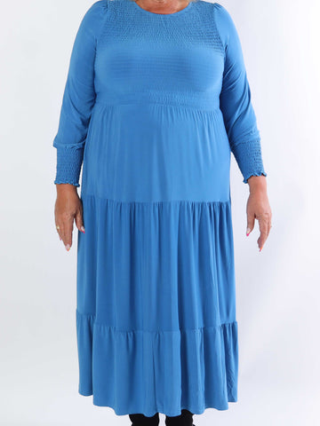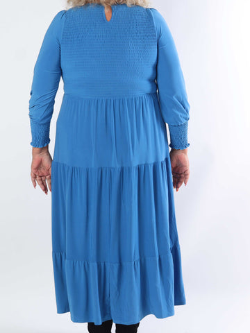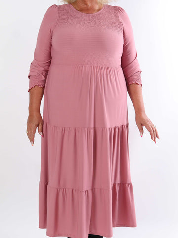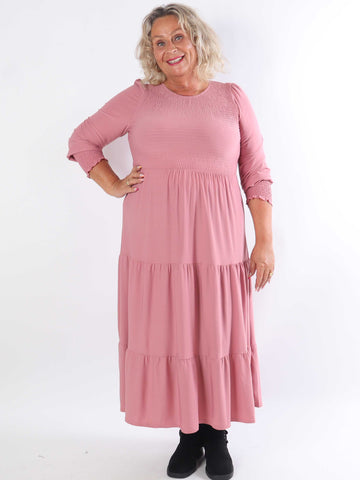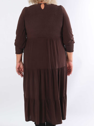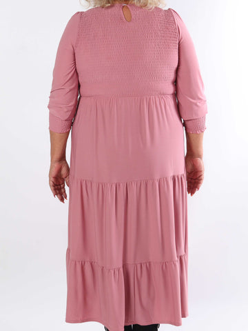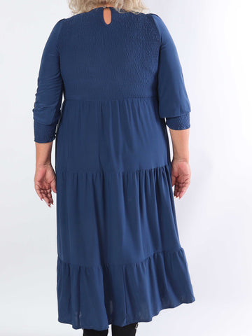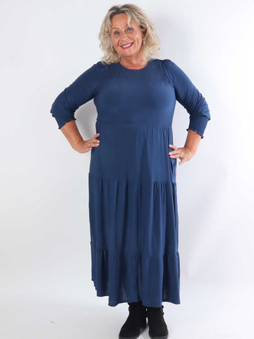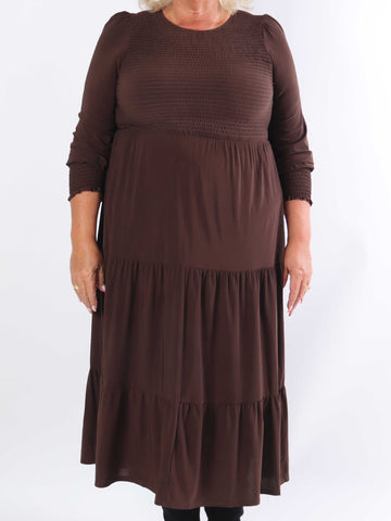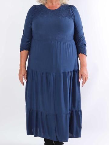 Kelly Long - Elastisk plus size kjole med smock henover brystet