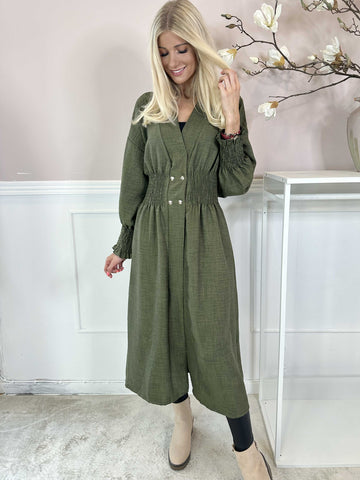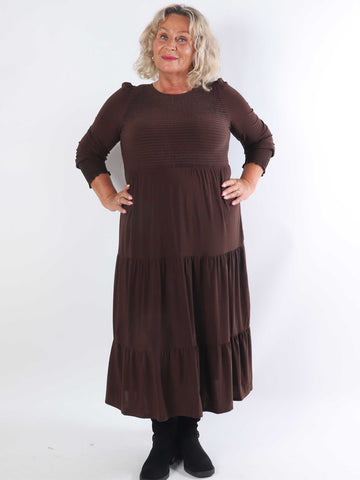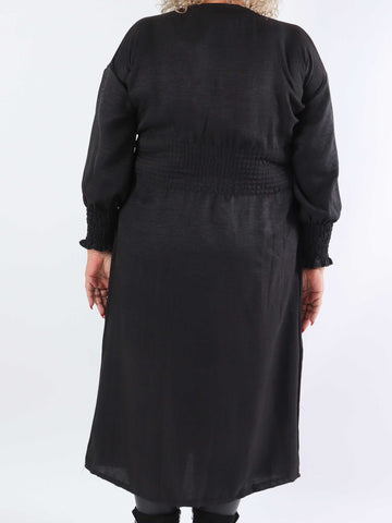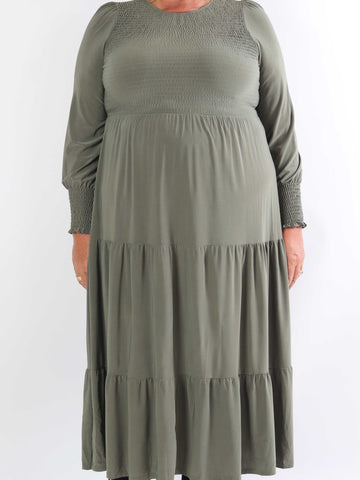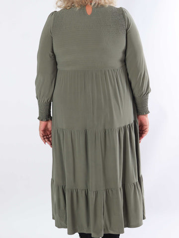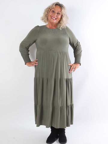 Kelly Elements Long - Elastisk plus size kjole med smock henover brystet