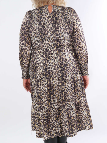 Kelly Animal Long - Elastisk plus size kjole med smock henover brystet