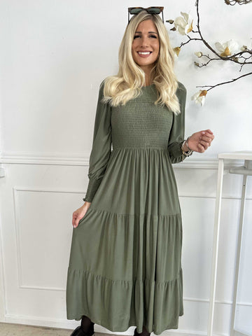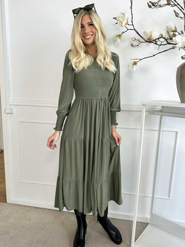 Kelly Elements Long - Elastisk kjole med smock henover brystet