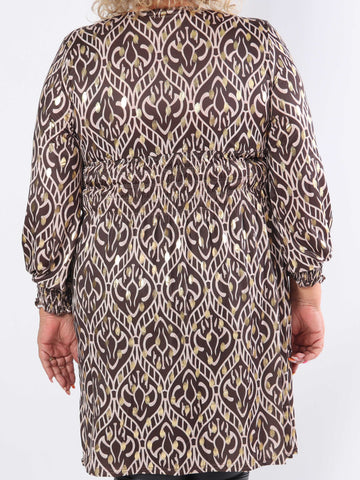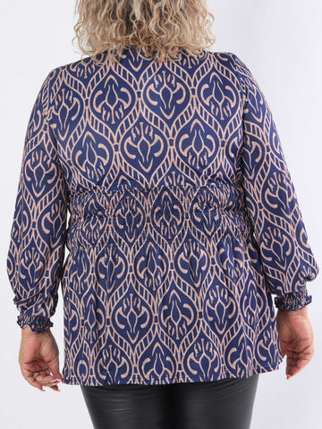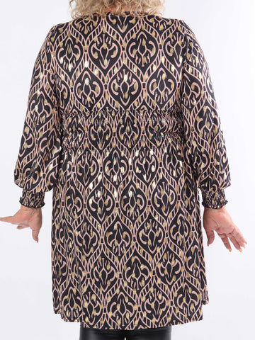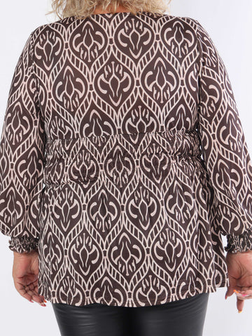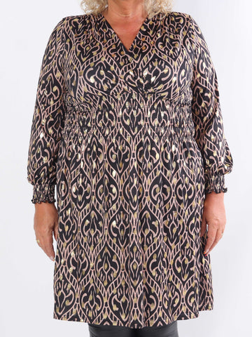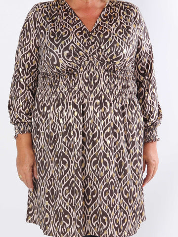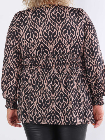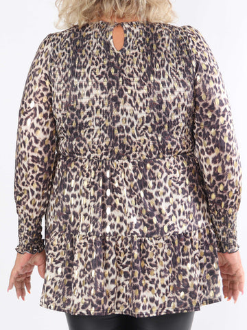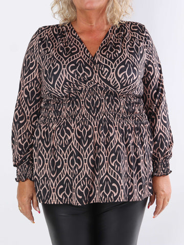 Kelly Animal Shirt - Elastisk plus size bluse med smock henover brystet