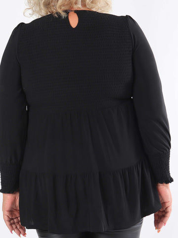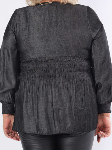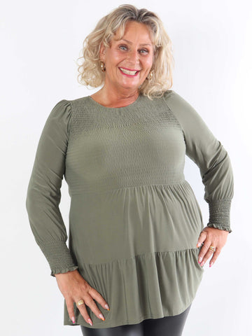 Kelly Elements Shirt - Elastisk plus size bluse med smock henover brystet