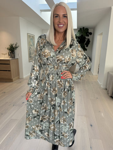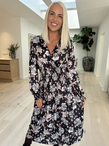 Ebba Flower Long - Sød blomstret kjole i elastisk stof