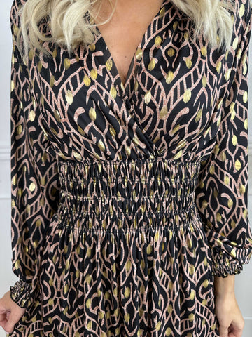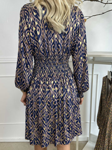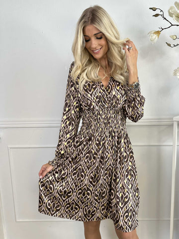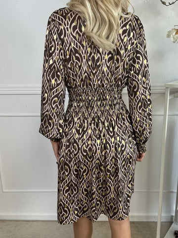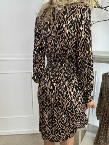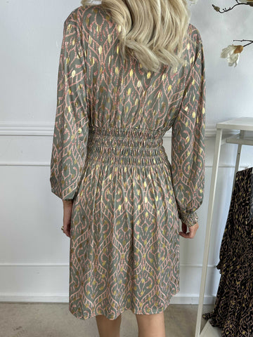 Pams Boho Short L/S - Elastisk mønstret kjole i krølfrit stof