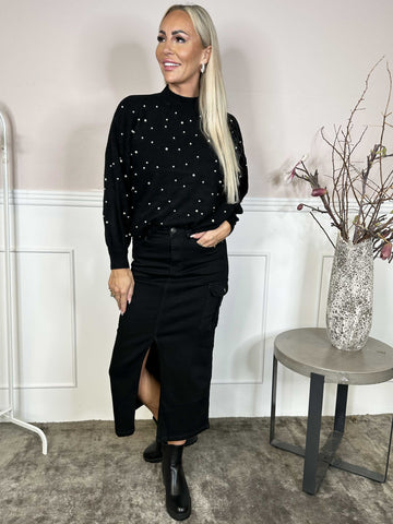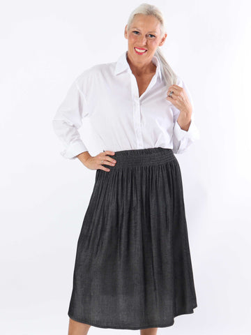 Pams Midi Denim Skirt - Plus size nederdel med lommer