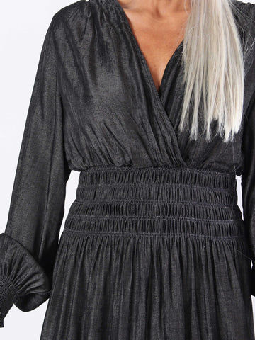 Pams Blossom Midi L/S - Elastisk kjole i krølfrit stof med sølv prikker
