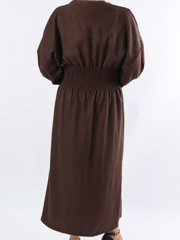 Pams Boho Midi L/S - Elastisk kjole i krølfrit stof