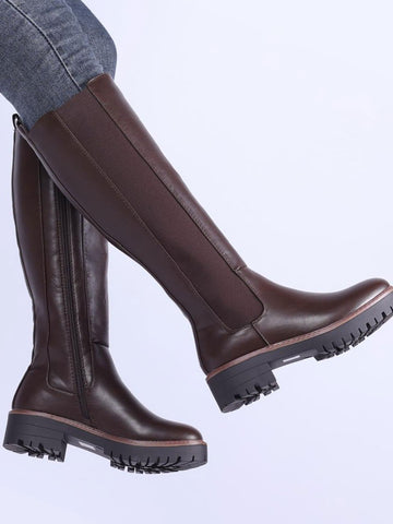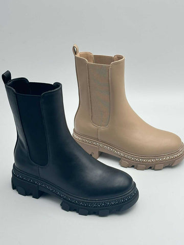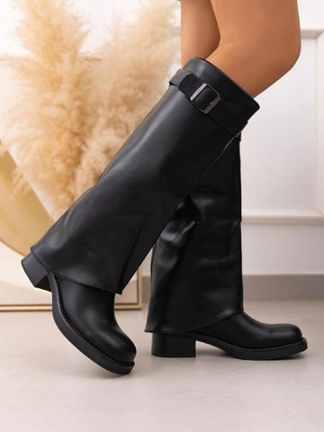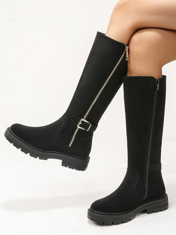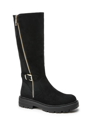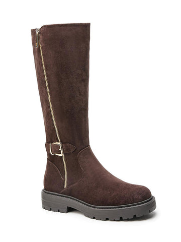 Irina - Højskaftet støvler i ruskindslook med lynlås