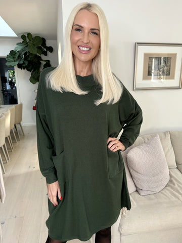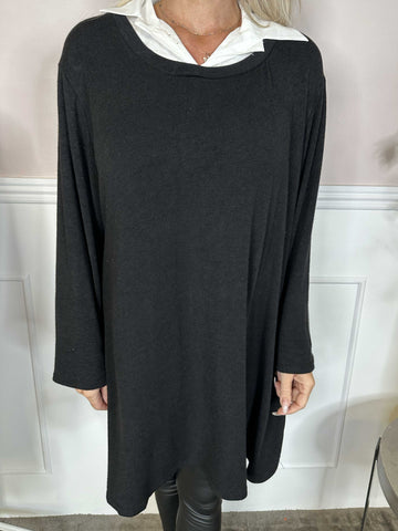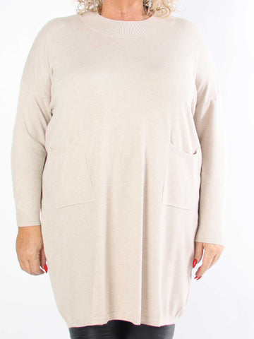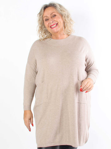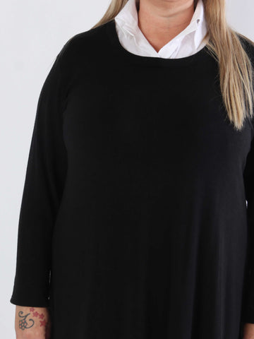 Azmina Plain L/S - Elastisk plus size tunikakjole i loose fit